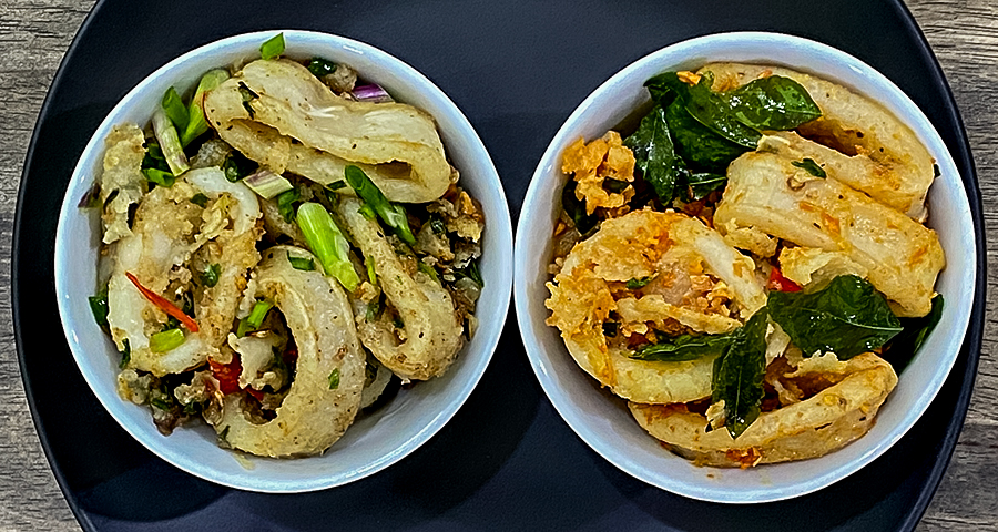 Left: Salt and Pepper Squid Right: Salted Egg Squid