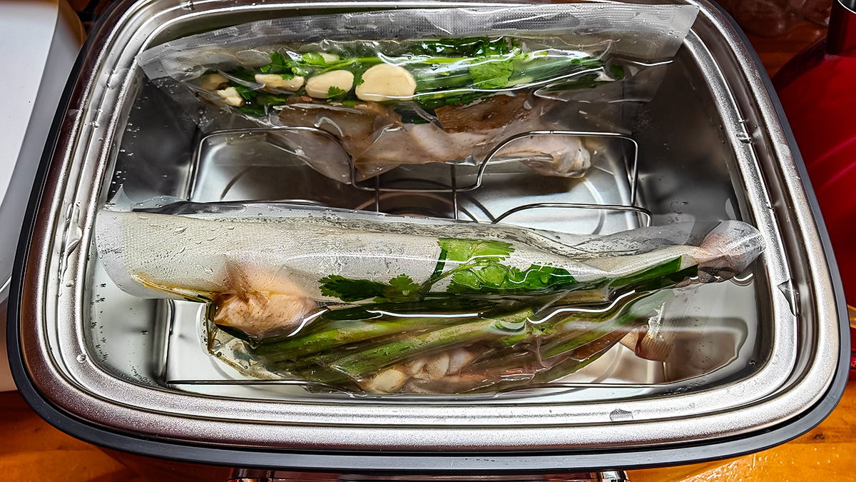 Long-Time Cooking. The food is enclosed in a heat-proof plastic