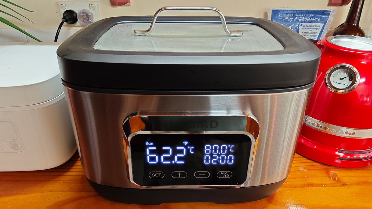 ![]() Sous vide waterbath coming to the set temperature on 80°C |