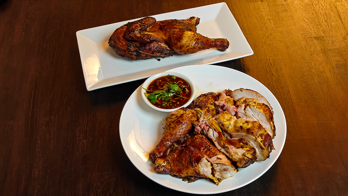 The use of wood chips in the BBQ adds a smokiness to the grilled