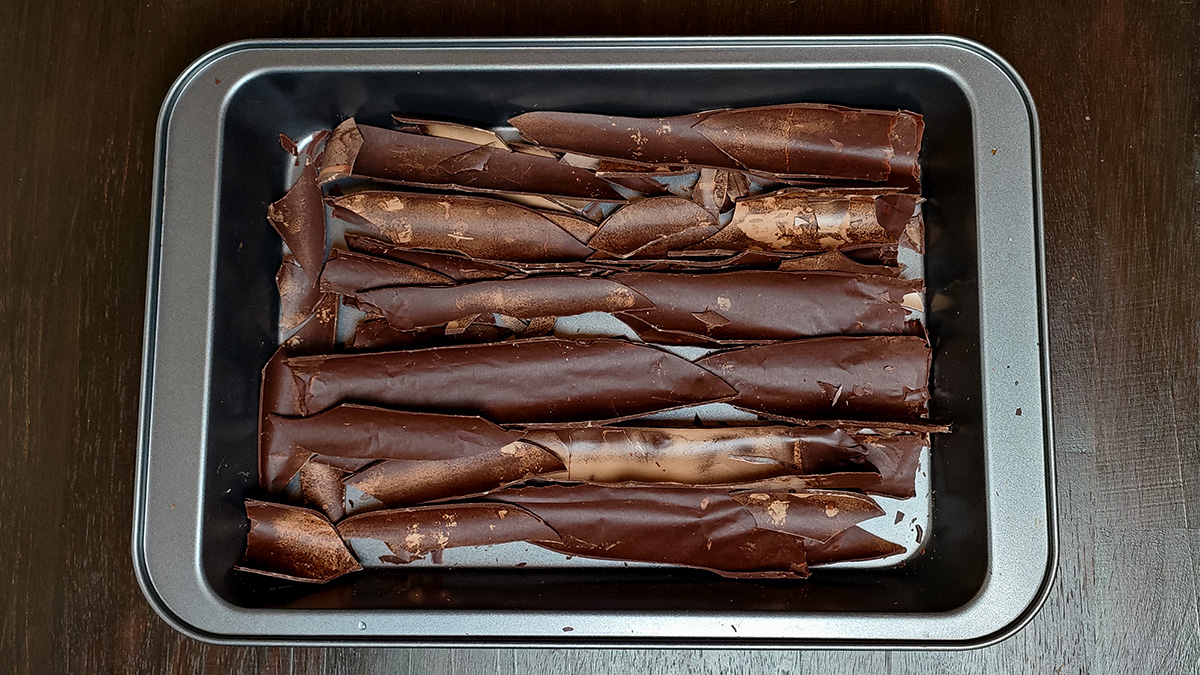 Make the chocolate shards and shavings (doing this the night