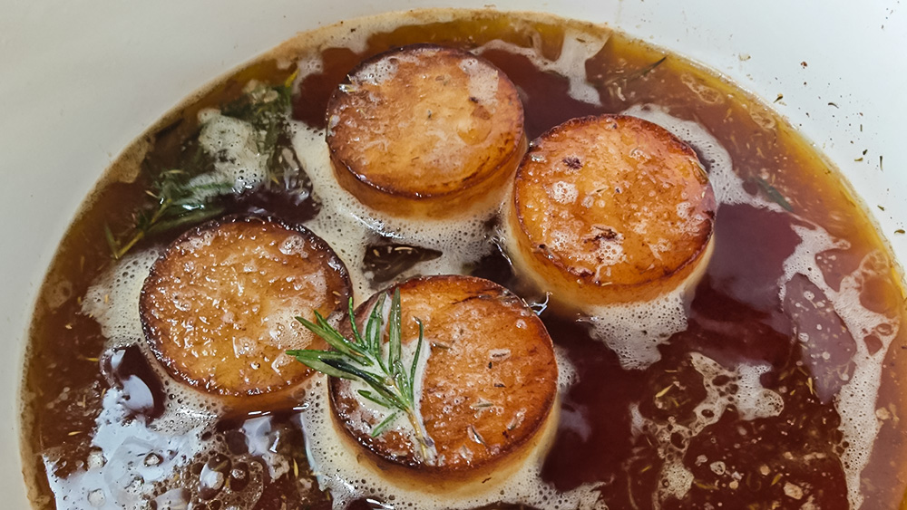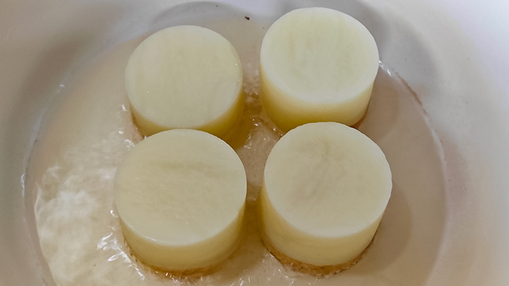 potato rounds being browned off