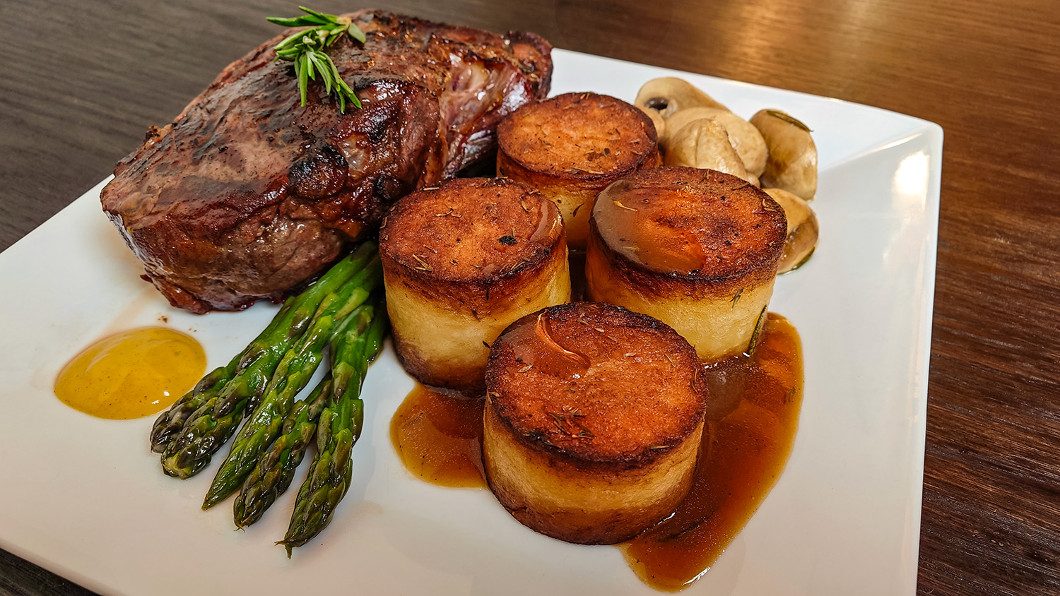 de Terre Fondantes with a piece of thick-cut Scotch Fillet,